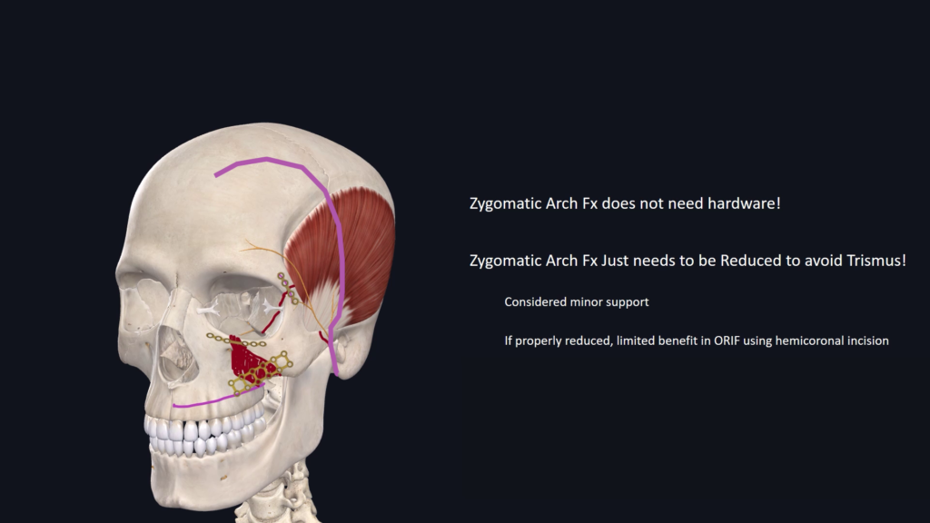 Minor structural support is provided by infraorbital rim and zygomatic arch. As such, zygomatic arch fractures do not need to be routinely plated.