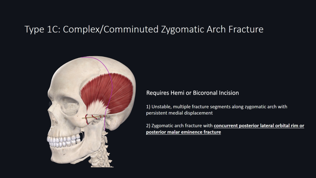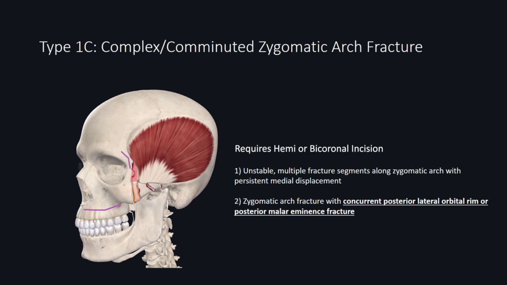 Type 1A-1C addresses zygomatic arch fracture segment