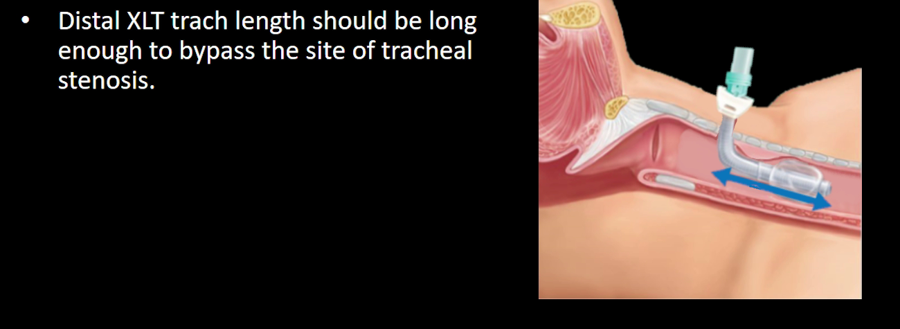How do you size distal XLT tracheostomy tube in a patient with tracheal stenosis?