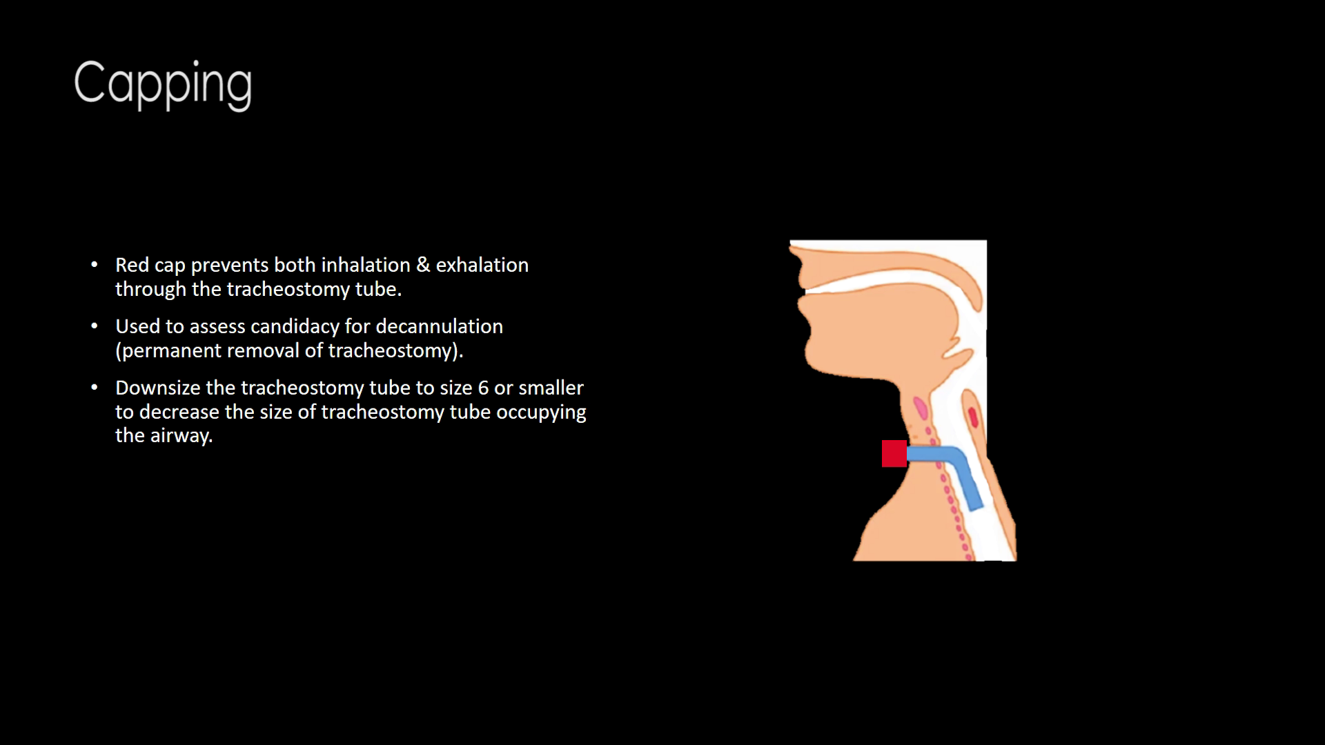 Passy Muir Valve allows inhalation through the tracheostomy tube but prevents exhalation through the tracheostomy tube. This helps with phonation by allowing air to be diverted through the oral cavity.