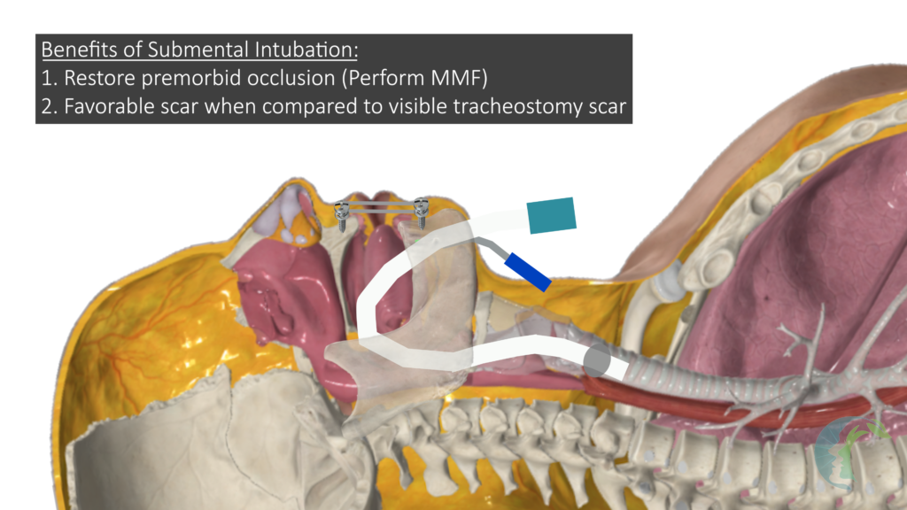 - Patients requiring long-term tracheostomy — For patients needing prolonged ventilatory support, tracheostomy is a safer postoperative option for airway management. Submental intubation is not suitable for long-term postoperative use.