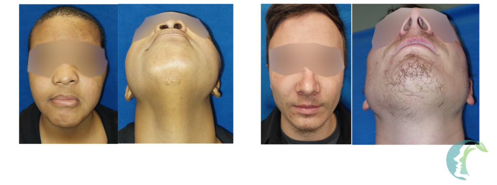 - The resulting scar is aesthetically optimal — it is invisible from a frontal view, and from a basal view, the curvilinear scar is hidden behind the midline posterior mandible.