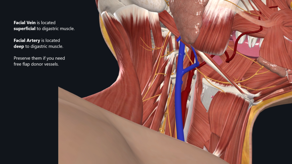 - Hypoglossal Nerve: Critical for tongue mobility; preserve during dissection.